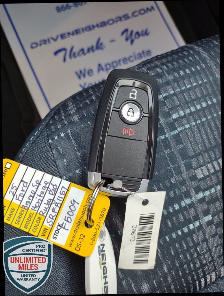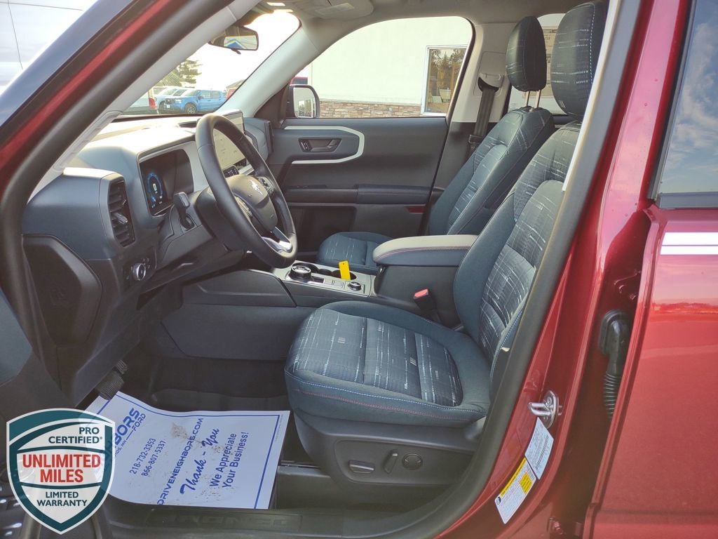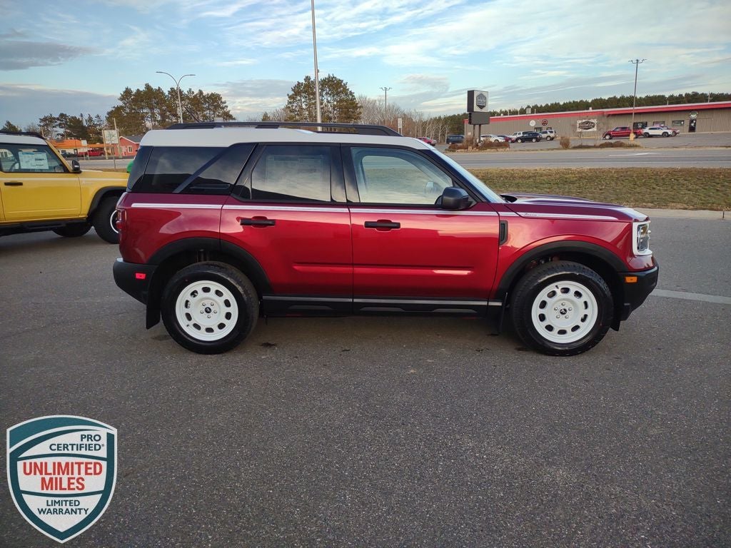 Neighbors Ford Of Park Rapids is excited to offer this good-looking 2025 Ford Bronco Sport Heritage in Ruby Red Metallic Tinted Clearcoat, Beautifully equipped with Convenience Package (Front Driver/Passenger Seat Back Map Pockets, Heated 8-Way Power Driver's Seat, LED Fog Lamps, Premium Wrapped Steering Wheel, and Universal Garage Door Opener (UGDO)), Equipment Group 250A, 4-Wheel Disc Brakes, 6 Speakers, ABS brakes, Air Conditioning, Alloy wheels, AM/FM radio: SiriusXM, AM/FM Stereo, Auto High-beam Headlights, Automatic temperature control, Brake assist, Compass, Delay-off headlights, Driver door bin, Driver vanity mirror, Dual front impact airbags, Dual front side impact airbags, Electronic Stability Control, Emergency communication system: SYNC 4 911 Assist, Four wheel independent suspension, Front & Rear Floor Liners w/o Carpet Mats, Front & Rear Splash Guards, Front anti-roll bar, Front Bucket Seats, Front Center Armrest, Front License Plate Bracket, Front reading lights, Fully automatic headlights, Heated door mirrors, Illuminated entry, Knee airbag, Low tire pressure warning, Occupant sensing airbag, Outside temperature display, Overhead airbag, Overhead console, Panic alarm, Passenger door bin, Passenger vanity mirror, Plaid Cloth Front Bucket Seats, Power door mirrors, Power Moonroof, Power steering, Power windows, Radio data system, Rear anti-roll bar, Rear Parking Sensors, Rear reading lights, Rear seat center armrest, Rear window defroster, Rear window wiper, Remote keyless entry, Security system, SiriusXM, Speed control, Speed-sensing steering, Speed-Sensitive Wipers, Split folding rear seat, Steering wheel mounted audio controls, SYNC 4 w/Enhanced Voice Recognition, Tachometer, Telescoping steering wheel, Tilt steering wheel, Traction control, Trip computer, Variably intermittent wipers, and Wheels: 17 Oxford White-Painted Aluminum! Price does not reflect state taxes and registration. $1000 - Bonus Customer Cash. Exp. 03/31/2026 $2500 - Retail Customer Cash. Exp. 03/31/2026 Must be 2016 or newer and less than 150k miles